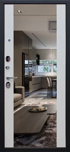 Надежная входная Дверь Вектор с зеркалом премиум класса по цене 48 880 руб. Большая толщина стали защитит от проникновения в ваш дом, квартиру или коттедж. Используется очень качественная фурнитура: замки, цилиндры, ручки, защелки. Покрытие и отделка двери изготовлено под внимательным контролем производителя. Дверь имеет долгий срок службы и гарантию.