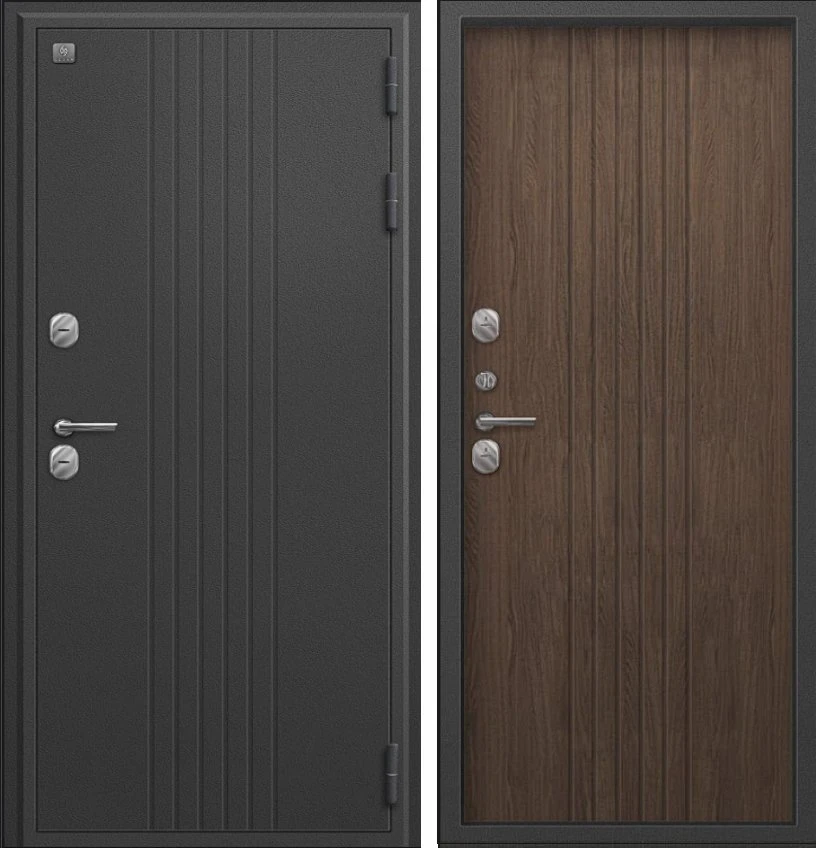 Надежная входная Дверь Термо-90 графит букле - миндаль рифлёный премиум класса по цене 38 230 руб. Большая толщина стали защитит от проникновения в ваш дом, квартиру или коттедж. Используется очень качественная фурнитура: замки, цилиндры, ручки, защелки. Покрытие и отделка двери изготовлено под внимательным контролем производителя. Дверь имеет долгий срок службы и гарантию.